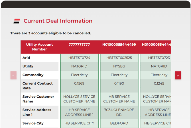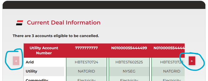 Navigating the Table: If the customer has multiple accounts, use the arrow buttons on the left and right sides of the screen to scroll horizontally through all accounts.