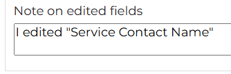 - Fill in the "Note on edited fields" text box to describe what was updated and why. This note will be saved to the cancellation ticket.