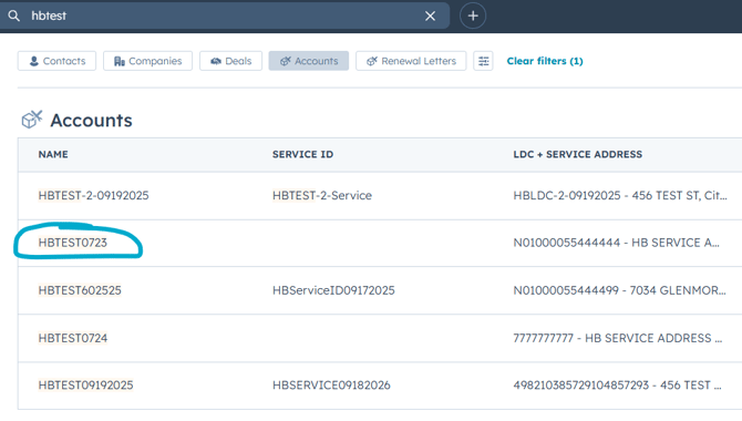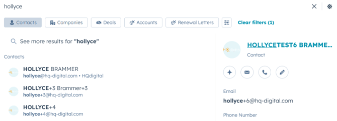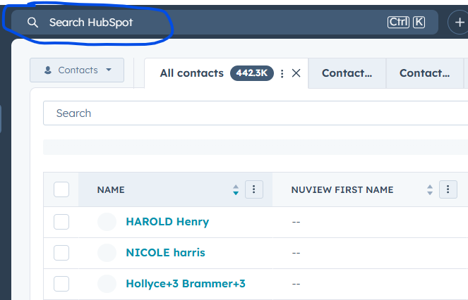 - Search for the Contact who is on the phone or their Account. Use the global search at the top of the HubSpot window.