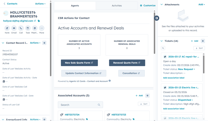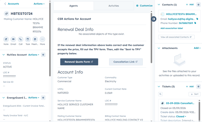 View a customer's energy accounts, record their renewal consent, and initiate a Third-Party Verification (TPV) call for any accounts they agree to renew.