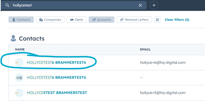 - When using the global search, you might need to filter the results accordignt o whether you are searching for a Contact or Account.