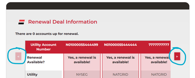 Navigating the Tables: If the customer has multiple accounts, use the arrow buttons on the left and right sides of the screen to scroll horizontally through all accounts.
