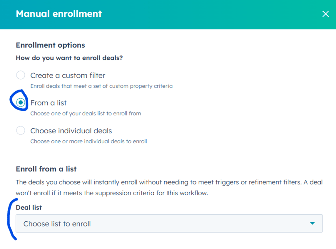 - Select "From a list" and then choose your list.