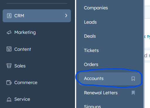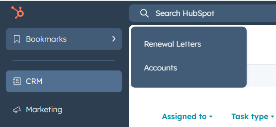 - Navigate to the screen you want to bookmark in the HubSpot left-hand navigation:
