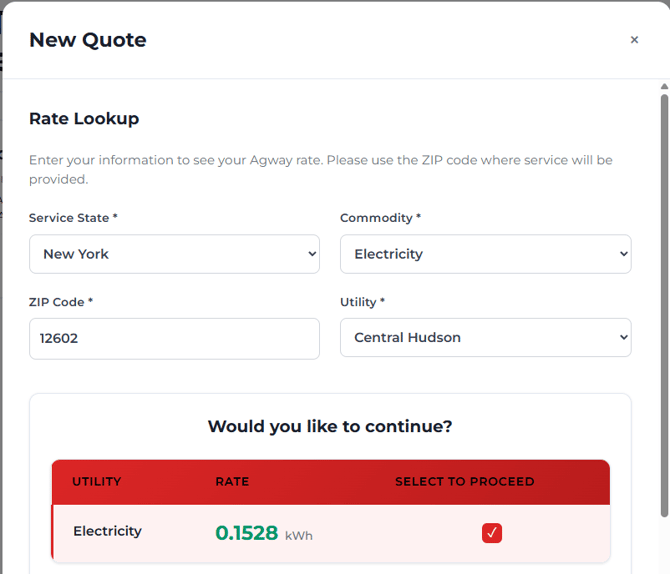 - A new window will open with a dashboard you will use to both retrieve a price quote and, if the customer chooses to continue, sign them up. The dashboard might be blank, or there might be existing cards for previous signups.
