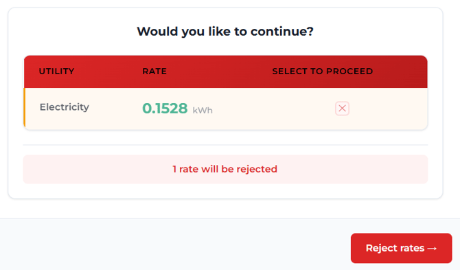 - Rejecting the rate means that the price quote will be recorded in HubSpot, but the customer is not signing up.