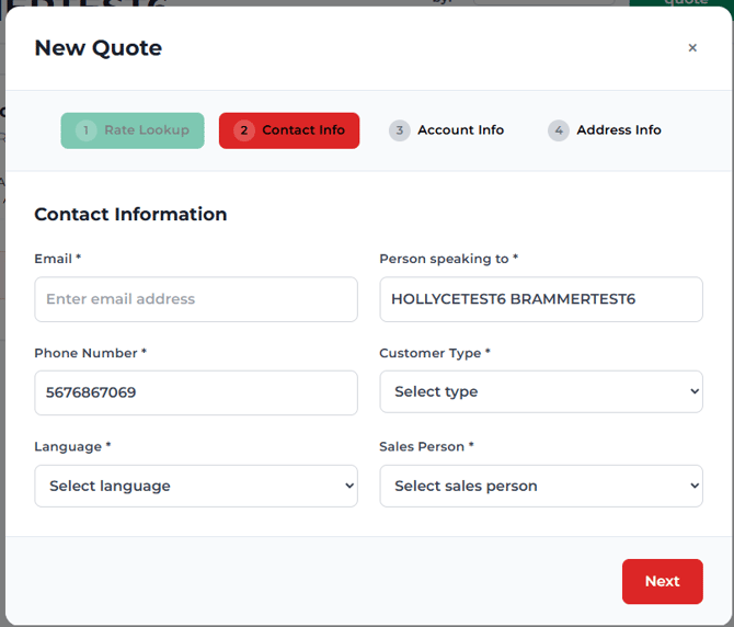 - The first part of the form is a quote form that will retrieve a rate or rates.