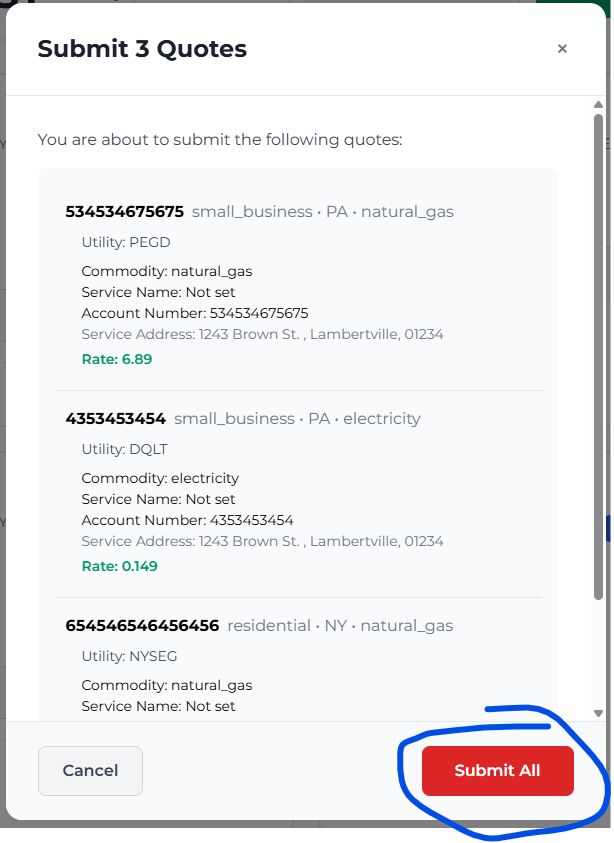 - On the confirmation screen, double-check all information. Then, scroll to the bottom and click the red "Submit All" button.